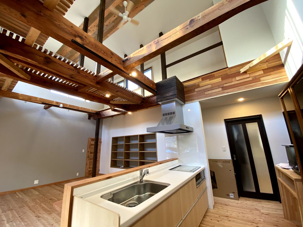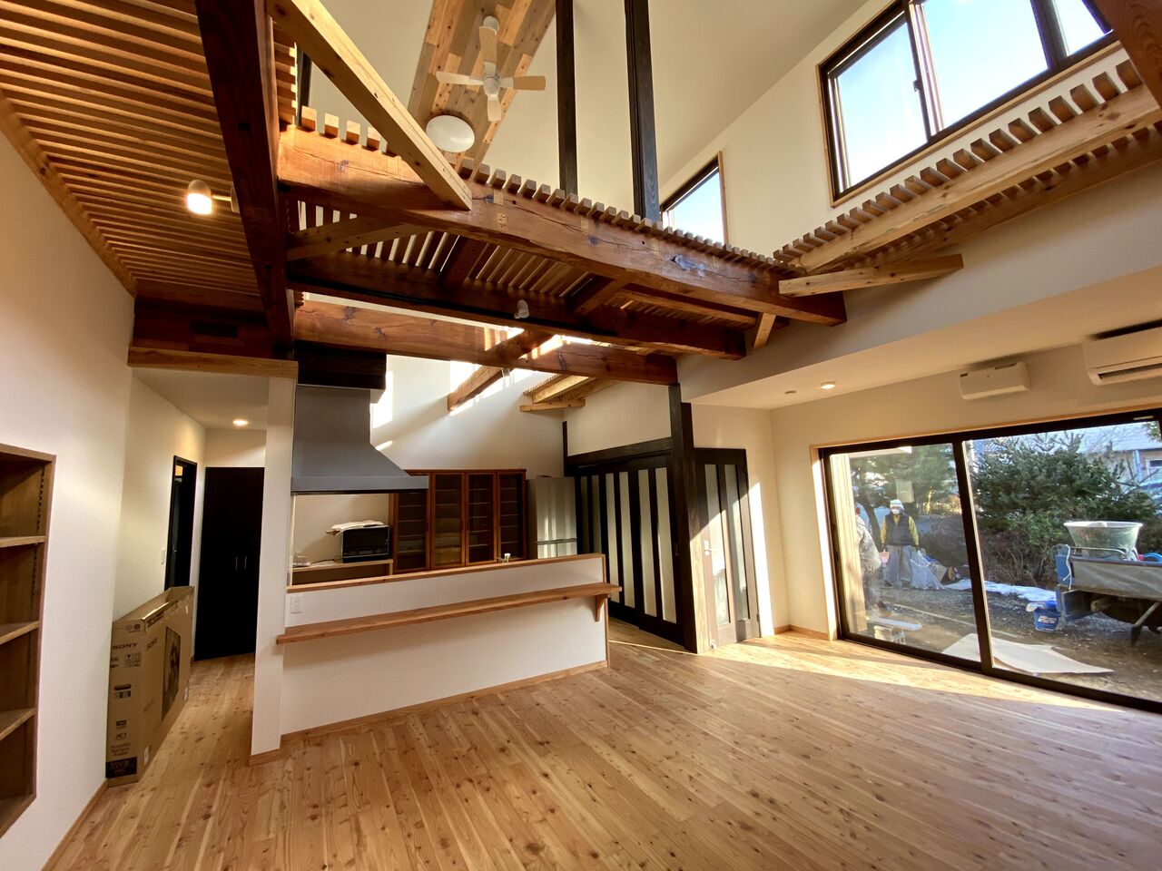 20202月10 2階建て住宅のリノベ-ション「よみがえった我が家」見学体感会 見学体感会日程と場所明日の11日(祭日)と16日(日)、10時~15時福島市御山字田中71~あったかいんだから~♪ 暖(だん)の家断熱改修リノベ-ションで冬の暮らしを楽しむ暖かい家へと変える子育て時代の2階建て住宅の2階子供部屋2室全てを減築する減築で現れた吹抜けの大空間が冬の暮らし方を変えた南向きの日当たりの良い和室2室を無垢唐松フロア-張りのリビングに改善~裸足で冬の暮らしを楽しむ~北角の寒く暗い台所と食堂をリビングに移設~奥様が家事を楽しむ~
